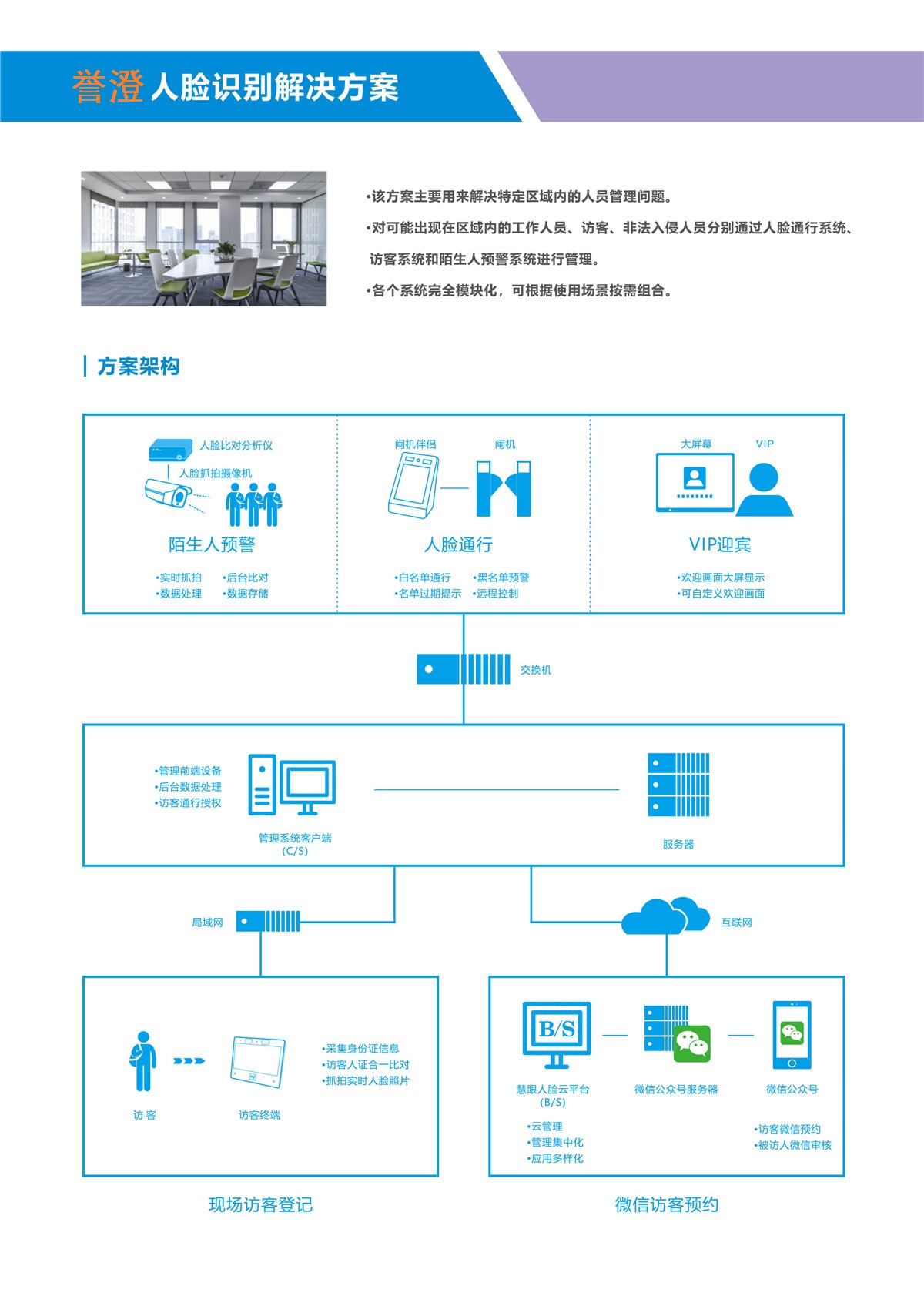 人臉識別技術是基于人工智能核心“深度學習”技術實現,是一套專門用于人員動態布控的預警系統,集視頻分析、運動跟蹤、人臉檢測、人臉識別、圖片存儲檢索和自動預警技術與一體。通過在人員經過地點設卡部署攝像機,對經過卡口的人員進行人臉抓拍。將抓拍的的人臉圖片進行存儲,并與超大人臉數據庫進行實時比對,在發現越權人員時,系統自動發出報警信號,并采取多種聯動方式進行控制。