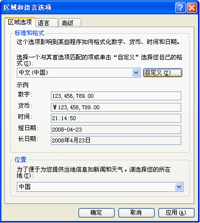1.在“開始”----à“控制面板” ----à“區域和語言選項”進入下面設置頁面